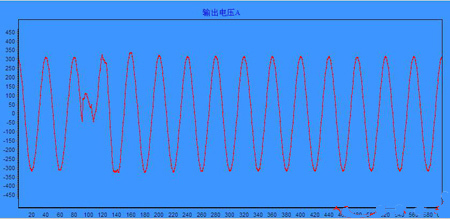 將具有IGBT短路檢查功用的兩個(gè)UPS模塊刺進(jìn)UPS機(jī)柜,短路其間一個(gè)功率模塊的逆變IGBT,運(yùn)用功率模塊的毛病錄播功用,功率模塊在發(fā)作逆變IGBT短路時(shí)會(huì)主動(dòng)保留逆變IGBT短路時(shí)刻前后的輸出電壓波形。該波形如下:
