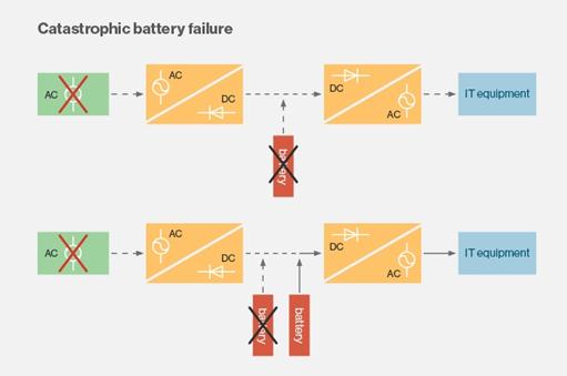 所有UPS系統(tǒng)都需要兩組電池串來(lái)防止在其中一組出現(xiàn)故障時(shí)出現(xiàn)災(zāi)難性故障。