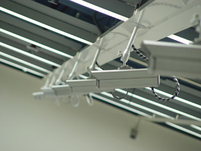 空調(diào)機(jī)送風(fēng)采用下送風(fēng)上回風(fēng)設(shè)計(jì),冷凍風(fēng)經(jīng)墊層樓板向上送出,對(duì)每一個(gè)機(jī)柜獨(dú)立供風(fēng),將數(shù)據(jù)處理設(shè)備散發(fā)的熱量中和,暖風(fēng)則由設(shè)備頂回送到空調(diào)器循環(huán)冷卻。由于送風(fēng)方向和熱流方向相同,符合熱流上升原理,不會(huì)形成紊流,因而是目前世界上最為推崇的空調(diào)供風(fēng)系統(tǒng)。